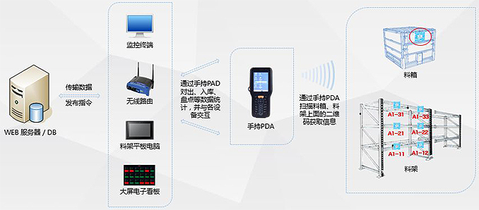 它由立體貨架、堆垛機(jī)、輸送機(jī)、搬運(yùn)設(shè)備、托盤、管理信息系統(tǒng)及其他外圍設(shè)備構(gòu)成。